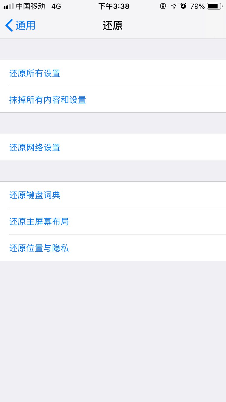 如果以上兩種方法不可行,再試試這個辦法,在設置頁面往下滑動,找到通用,再點擊進入其中的還原,接著點擊還原網絡設置,這時候要我們確認一次鎖屏密碼,輸入之后就可以進行還原網絡設置的操作。ps:這個程序操作之后,原本iPhone手機上的所以網絡信息,包括連接wifi密碼以及相關參數設置都會被清空。