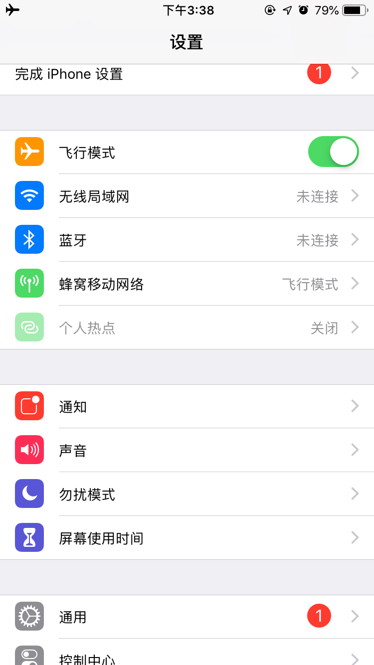 在設置中把飛行模式打開,就會看到手機上方信號欄的位置顯示一個小飛機,這說明飛行模式開啟成功了,然后過10秒到30秒左右再把飛行模式關閉,這樣一操作手機信號會好許多。