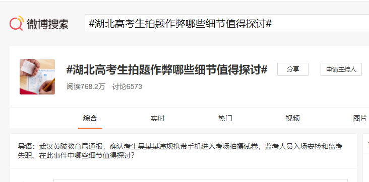 日前,湖北某校考生在考試中發(fā)現(xiàn)作弊,該考生將手機藏匿于草稿紙下方,用手機拍照搜索答案。