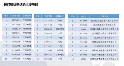 從通報中可以得知,中國移動的整治效果較好。中國聯通和中國電信為電信騷擾提供了主要的通信支持。撥打騷擾電話的主要號段中,基本都是中國電信的號碼,占據前十名中的8席,其中廣東電信更是一舉占據了7席;中國聯通四川公司和湖南公司的號碼各占一席。