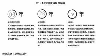 通過(guò)對(duì)行業(yè)本質(zhì)的審視和評(píng)估,該機(jī)構(gòu)認(rèn)為5G技術(shù)在垂直行業(yè)的發(fā)展周期將涵蓋以下三個(gè)時(shí)間段:在初期的0~3年,5G技術(shù)發(fā)展主要應(yīng)用于制造業(yè)及工業(yè)鏈中,用以促進(jìn)智慧城市和智能網(wǎng)絡(luò)的發(fā)展。在中期的2~6年,5G技術(shù)覆蓋面將延伸到服務(wù)行業(yè),娛樂(lè)、傳媒、醫(yī)療衛(wèi)生等大量垂直行業(yè)將從中獲益。5年之后,預(yù)計(jì)全球大部分電信運(yùn)營(yíng)商已經(jīng)開(kāi)始大規(guī)模部署5G網(wǎng)絡(luò),隨著移動(dòng)運(yùn)營(yíng)商不斷轉(zhuǎn)變商業(yè)模式以利用5G帶來(lái)的邊緣計(jì)算能力和急速連接能力,5G技術(shù)的發(fā)展?jié)摿⒏鼮橥怀龅仫@現(xiàn)。