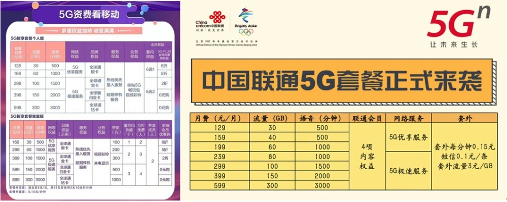 2、5G專屬套餐越來越便宜